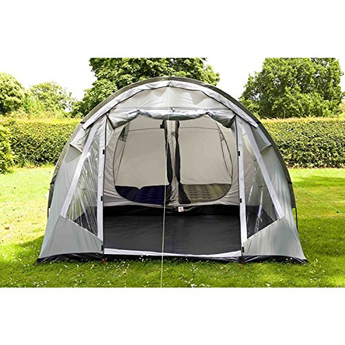 Dieses Tunnel Zelt bietet einen großen und komfortablen Wohnraum für 4 Personen. Es besticht durch seine höhe wodurch man problemlos im Zelt stehen kann. Sicherheit ist durch einen nur schwer entflammbaren Zeltstoff gewährleistet ebenso sind die verwendeten Materialien sehr wetterbeständig wodurch Sie auch bei schlechtem Wetter im inneren trocken bleiben und optimalen Komfort genießen.Die Zeltecken und Zeltböden sind miteinander verschweißt und auch an den Reißverschlüssen ist ein Wasserschutz verbaut.